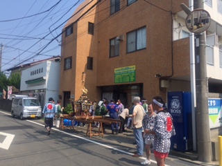 参加した消防団員が少ないため、陽光台5丁目の午前及び午後の子供神輿、大人神輿の巡行の交通整理の支援をさせて頂きました。