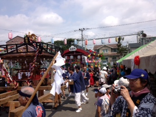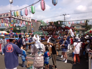 神輿の巡行が始まる前に自治会の方から、昨年、陽光台小学校で行われた防災訓練で、消化器の訓練に参加しましたと言って頂き、団員の顔を覚えていて頂いていました。