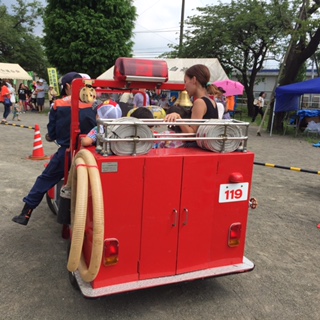 消防団車両の運転席にも多くの子供さんや大人の方にも、乗って頂きました。