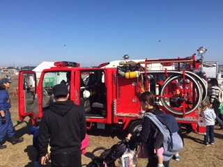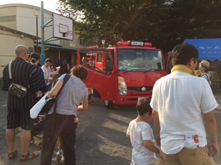 消防車を展示し、多くのお子さんに運転席に乗って頂き、
