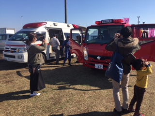 車両は、救急車、女性分団のあじさい隊号と消防団車両を展示しました。
