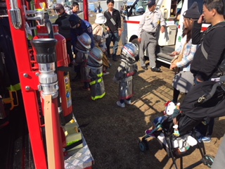 大人の方で希望される方には、消防団が使用している防火衣を着装して頂きました。
