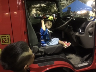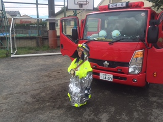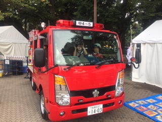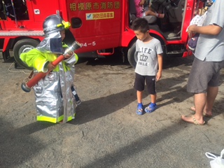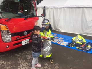 多くのお子さんに車両へ乗って頂いたり、防火衣、防火帽を着装し、筒先を持って親御さんに写真を撮って頂き楽しんでもらいました。