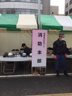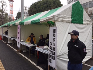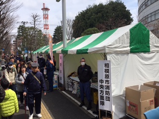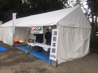 相模原消防本部のテントの隣に中央方面隊のテントが設置され、祭典会場の警戒を実施致しました。