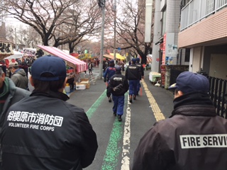 警戒は、相模原本署の職員の方、中央方面隊第3分団の団員、中央方面隊第4分団の団員のチームに分かれて実施しました。
