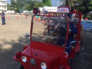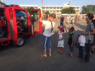光は丘消防団の消防車も展示し、多くのお子さんに乗車して頂きました。