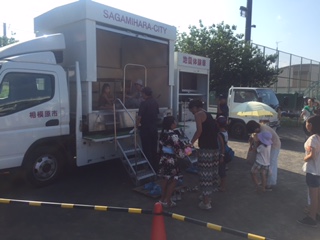 安全安心まちづくりコーナで行われた、起震車による震度体験、ミニ消防車乗車の支援をさせて頂きました。