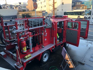 署員の方は、災害発生に備え、消防車出場準備をされました。