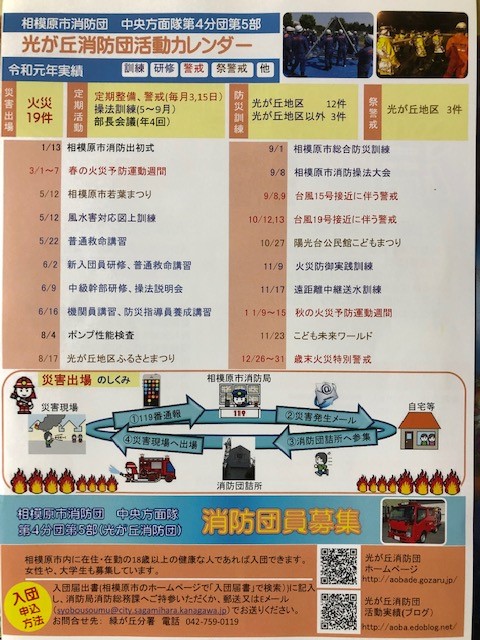 2020/02/13(木)、光が丘消防団の紹介、団員募集のチラシが自治会の回覧で団員の自宅にも配布されました。