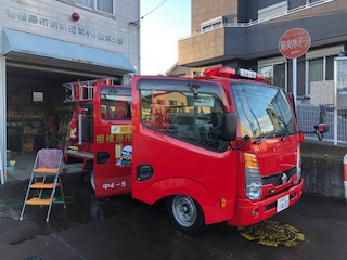 2020/12/31(木)は、詰所で消防車を洗車しました。