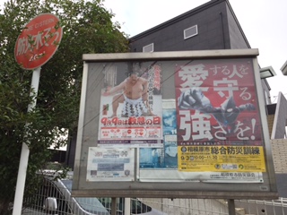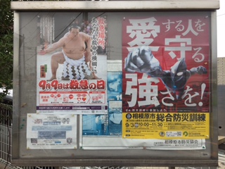 洗車終了後、掲示板に2017/09/30の相模原市総合防災訓練と9月9日は救急の日のポスターを貼りました。