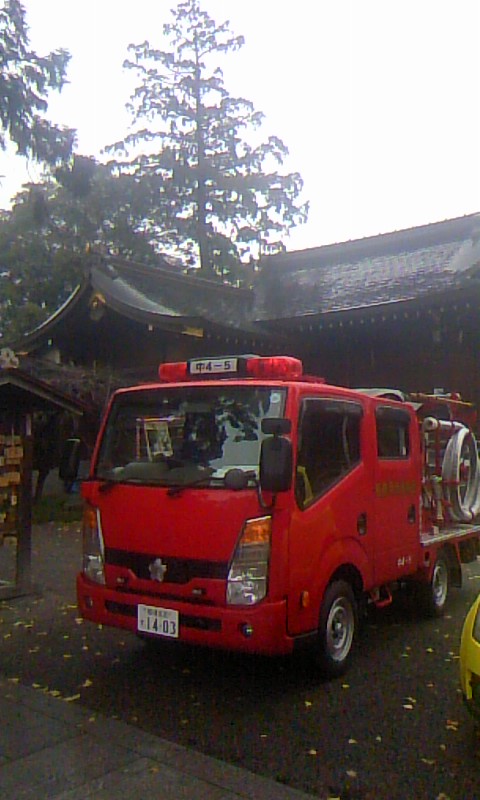 その後、亀が池八幡宮で消防車の交通安全の御祈願をしました。