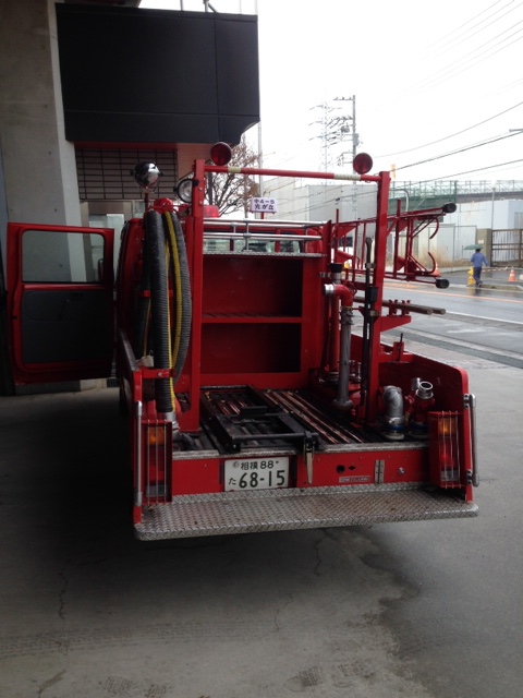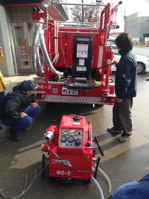 詰所に戻った後、緑が丘分署にも伺い、消防署員の方に消防車を見て頂き、緑が丘分署長からポンプの性能が格段に向上したことを消防署員に説明して頂きました。
