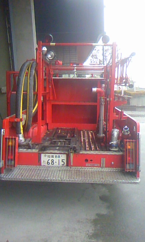 装備品を外した消防車は寂しく感じました。