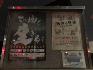 現在、2019/09/01の相模原市総合防災訓練、2019年版救急の日、光が丘消防団の団員募集のポスターが掲示されています。