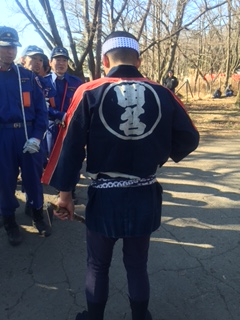 第二分団の指揮を担当された団員の法被に「田名村警防團」、「第二分團警防員」と書かれていました。また、袖には、階級章が縫い付けられていました。