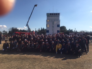 消防局の方に消防団の団体演技に参加した団員の集合写真を撮って頂きました。