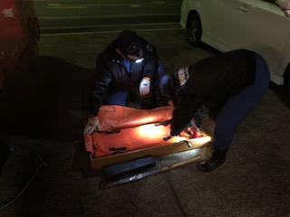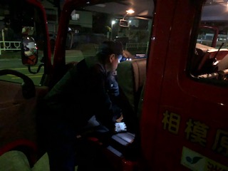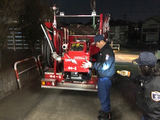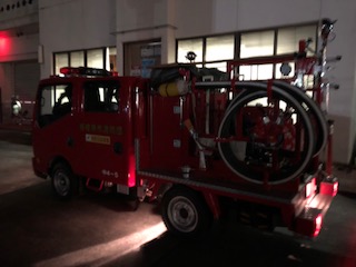 警戒の途中、中央方面隊第4分団事務局がある緑が丘分署に寄り、書類を提出しました。