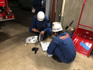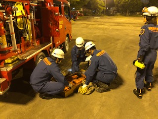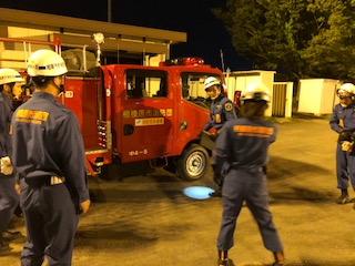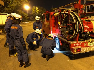 2018/05/15(火)は、担当区域の警戒を実施しました。 警戒終了後、緑が丘分署に立ち寄り、防災消防訓練場で定期整備を実施し、その後、新入団員向けに、火災現場を想定した実働訓練、及び操法訓練の一部を行いました。