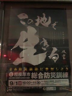 定期整備中、9月1日に相模補給廠一部返還地で実施される、相模原市総合防災訓練のポスターを掲示板に掲示しました。