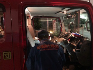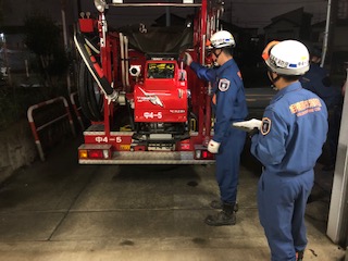 警戒の途中、緑が丘分署に立ち寄り、第4分団事務局へ提出物を届けました。