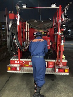 定期整備終了後、受持区域の警戒と、詰所で防災訓練で指導の仕方の訓練をするグループに分かれました。
