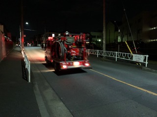 警戒の途中、緑が丘分署に寄り、消防車に先日給油した際のレシートを提出しました。