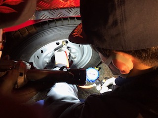 タイヤ交換終了後、増し締めするため受持ち区域を警戒しました