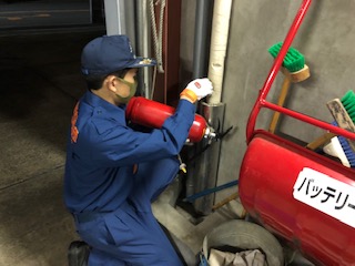 消防車に積載している水消火器で、初期消火の訓練の指導方法の訓練をし、水及びエアーも充填しました。
