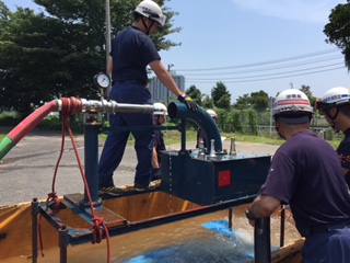 2015/07/12 下溝防災消防訓練場で行われたポンプ性能検査を受けました。