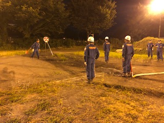 第1部以外の団員は、防火水槽のセッティング・放水、送水後のホースの二重巻を行う等の支援を行いました。