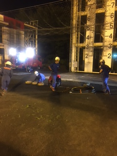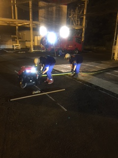 昨年度、指揮と1番員を経験した団員どうしで交替し、昨年度、2番員、3番員を経験した団員でどうしで交替し操法訓練を実施しました。 グラウンドは、水溜まりがかなり残っていたので、訓練塔の前を定位にして訓練を実施しました。 古淵消防団の部長が見学に来られ、自家用車のヘッドライトで操法訓練を照らして頂きました。