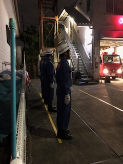 神奈川県の操法大会へ相模原市消防団として参加するチームが、淵野辺公園の隣接地で練習していると聞き、詰所での訓練終了後、淵野辺公園の隣接地へ移動し、見学させて頂きました。