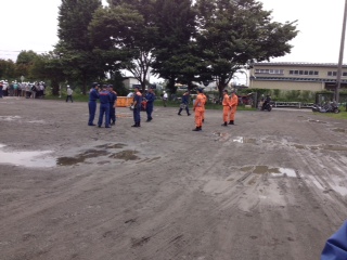 操法説明会中、他の救助隊の方が7/30に千葉県の消防学校で行われる第43回消防技術関東地区指導会に向けて訓練を始められました。