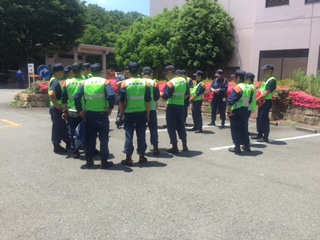 操法大会出場予定者が集まりましたので、一同が整列できる場所がないほどの参加者でした。