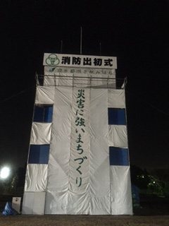 消防出初式 消防団演技の訓練ではいつも相模原市消防局の方に事前準備と後片付けをして頂き感謝しております。