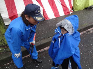 警戒中、赤十字奉仕団の方が、
