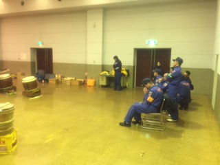 明日は時間的な余裕がないので、本日、消防局からオープンセレモニーに参加する団員へ記念品が配布されました。