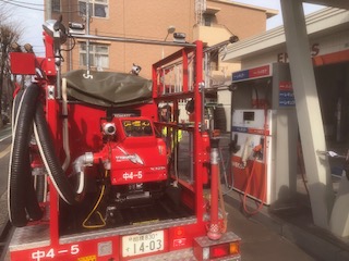 給油後、中央方面隊第4分団の事務局がある緑が丘分署へ給油の伝票を提出しました。