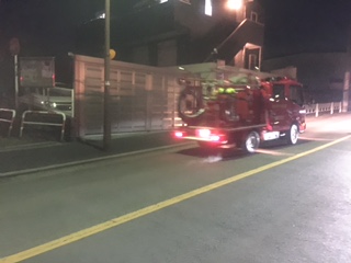 警戒中は、消防車のスピーカーを使用して火の元の確認等の呼びかけをさせて頂きました。