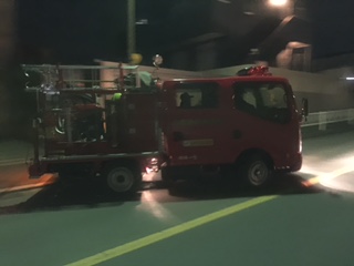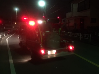 警戒中は、消防車のスピーカーを使用して、火の元の確認等の呼びかけをさせて頂きました。