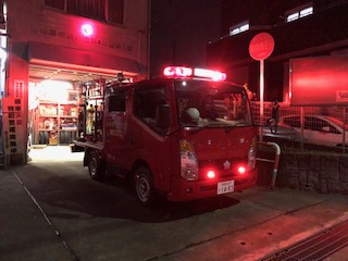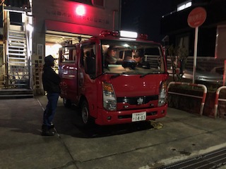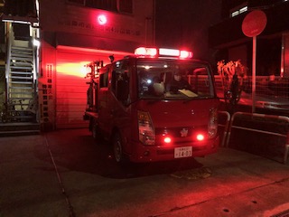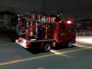 午後、詰所の直ぐ近くで、緑が丘分署の消防隊が出場する災害が発生したので、光が丘消防団も支援作業があるか現場へ出場しました。
