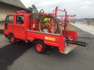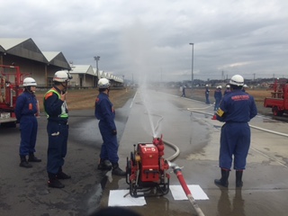 ・補給廠内の消火栓から消防署、消防団部隊と連携し防火水槽へ遠距離の中継送水を行い、放水活動を実施。