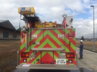 放水終了後、在日米陸軍基地管理本部緊急業務局統合消防本部長から声をかけて頂き、質問を受けました。
