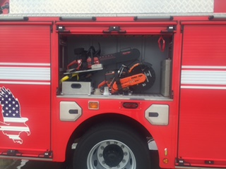 その後、消防団車両に積載されている梯子4台と、ブルーシートを使用した簡易水槽の作成の仕方を消防職員の方から説明を受けました。