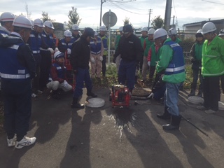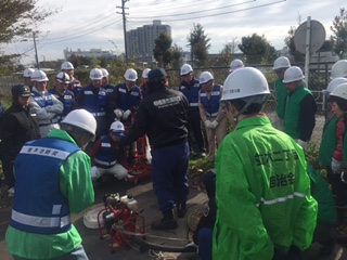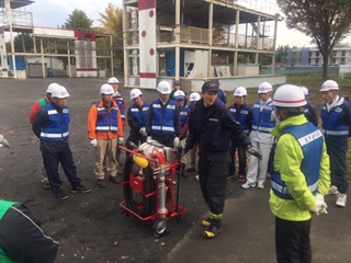 曇っていたため、少し寒かったですが、防災隊員の皆さん積極的に訓練に参加されました。