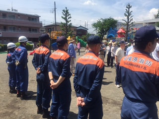 緑が丘2丁目独立防災隊の防災訓練と訓練時間が重なったので、署員は緑が丘分署ではなく、淵野辺分署の方が参加されました。