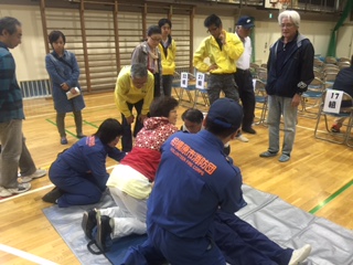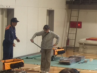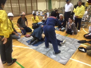 雨のため体育館のみで行われ、訓練項目が減りましたが、以下が行われました。