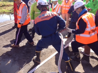 放水後、40mmホースの2重巻き、1重巻の両方を初めて経験しました、普段、消防団で使用している65mmと巻き方が違い、少しコツが必要でした。