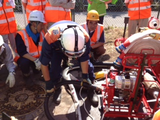 自主防災隊の皆さん積極的にポンプの操作、筒先のノズルの操作を体験されました。